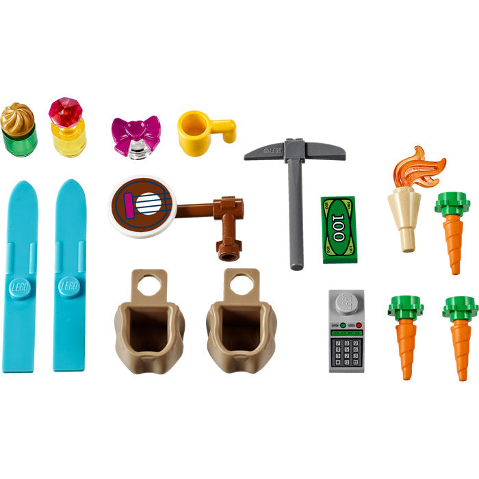 - Accessory elements include a banjo, skis, money, carrots, rucksack, perfume bottle, ice block, ice pick and 2 cups.