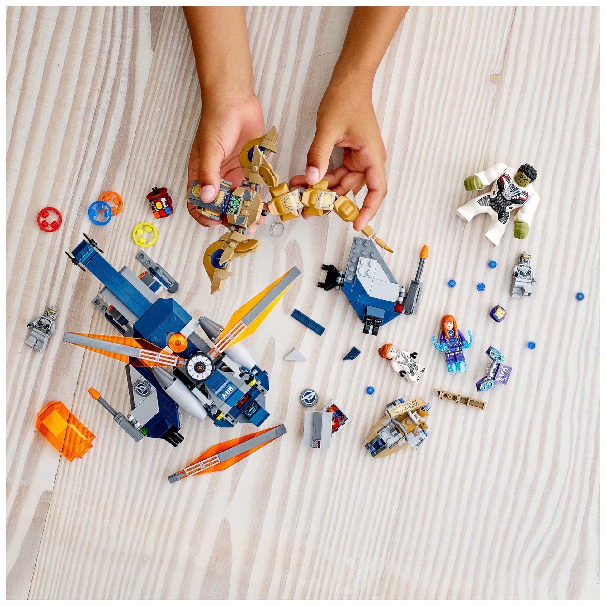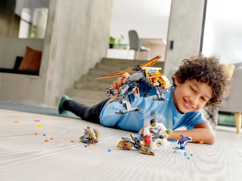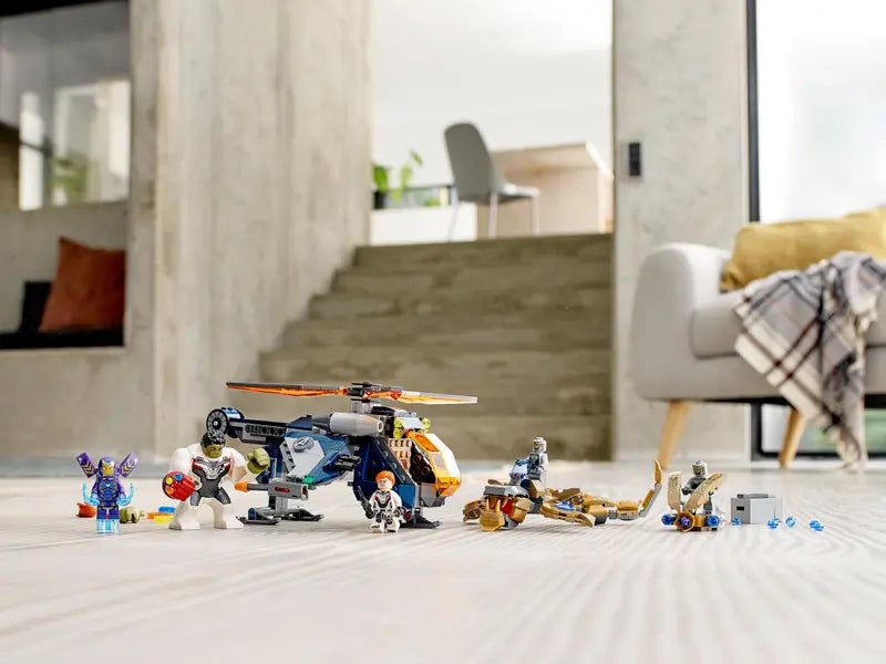 - Kids can role-play as Rescue, Black Widow and Hulk with a missile-shooting helicopter building toy and reimagine Marvel Avengers: Endgame battle scenes against 2 enemy Chitauri and a posable Leviathan.