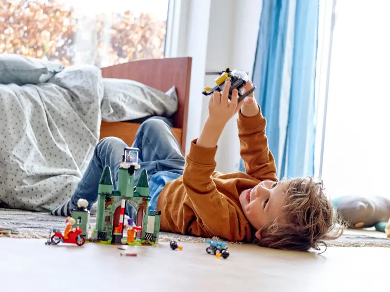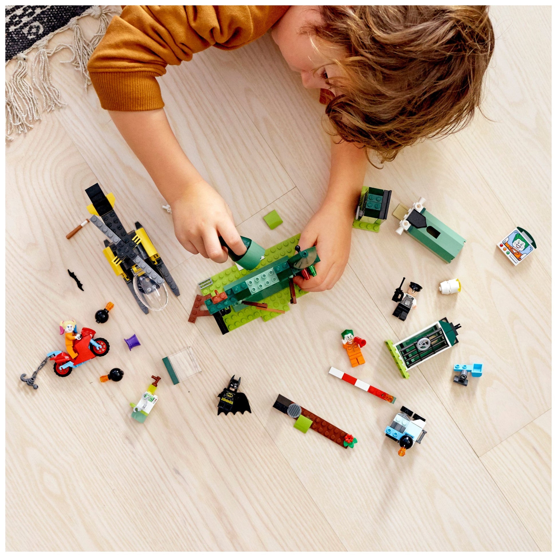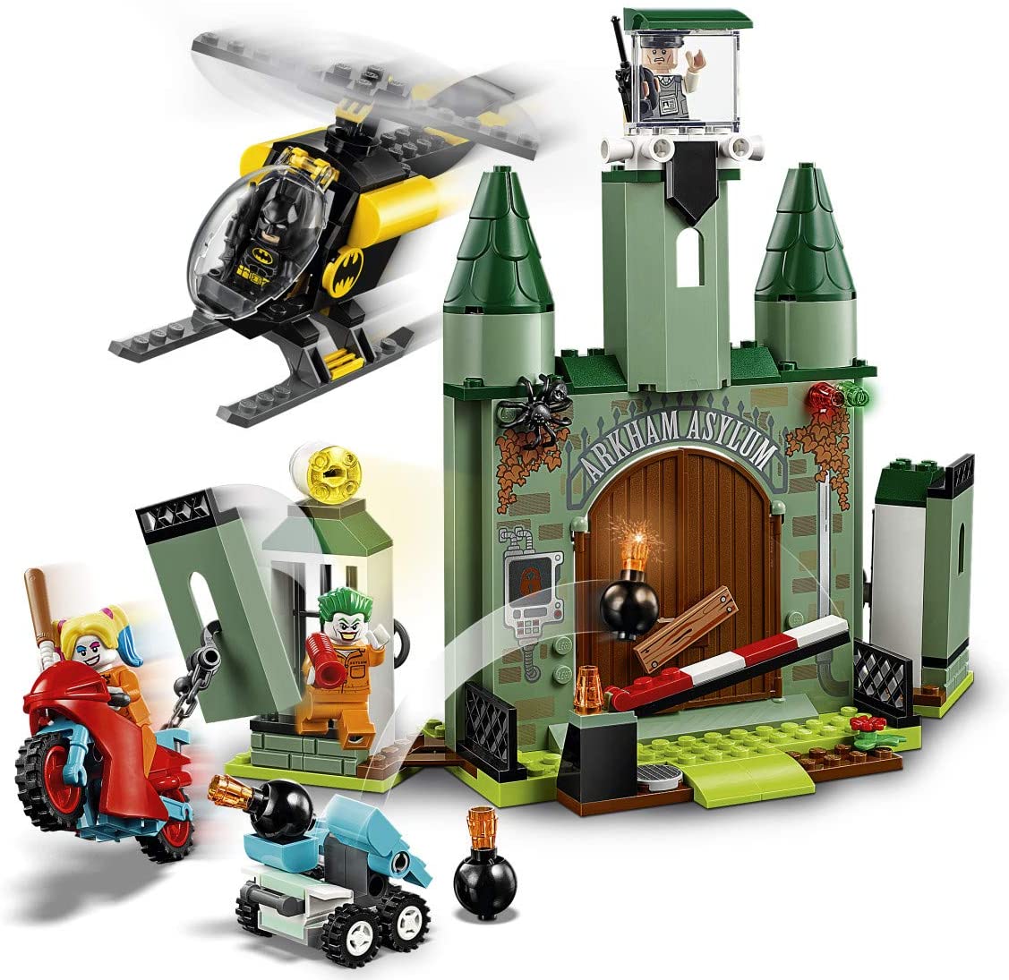 - Build Batman’s helicopter with a special Starter Brick chassis, Arkham Asylum prison, Harley Quinn’s bike and a mobile catapult to quickly get a child role-playing adventures as Batman!