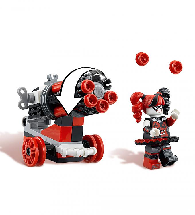 - Harley Quinn has a mobile cannon with a 6-stud rapid shooter.