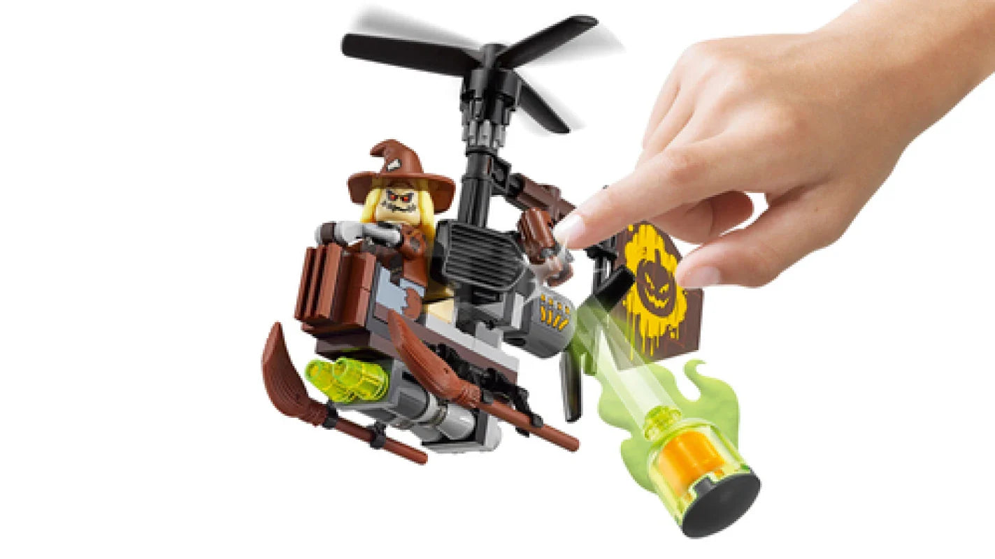 - Scarecrow gyro-copter features top and rear spinning rotors, an adjustable rudder, two bomb-drop functions and three translucent-green fear gas bomb elements.