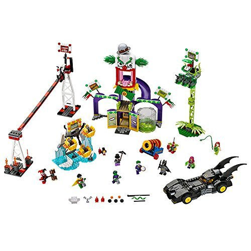 - Includes 8 minifigures with assorted accessories: Batman, Robin, Beast Boy, Starfire, The Penguin, The Joker, Poison Ivy and Harley Quinn