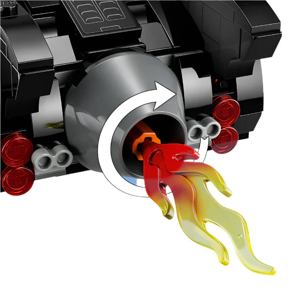 - Authentic action – Batman's iconic vehicle features an accessible cockpit for the Batman minifigure, a control that raises 2 blasters into position, a flip-open trunk and a flaming tailpipe.