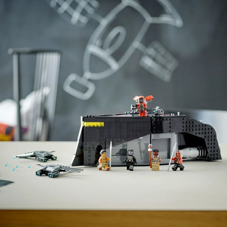 - Kids can position the drones on the deck of the toy boat to recreate scenes from the movie with their favorite Black Panther characters.