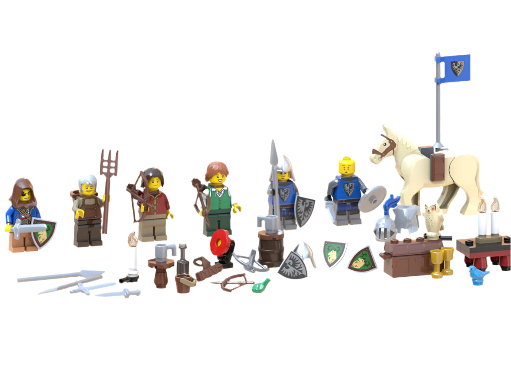 - The model has 6 minifigures : 3 forestmen, 1 peasant and 2 black falcon knights.