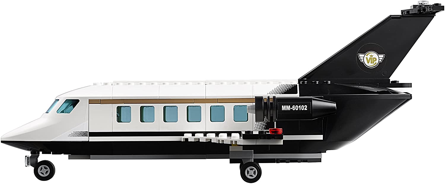 - Includes 4 minifigures: a businesswoman, pilot, limousine driver and an airport service worker.