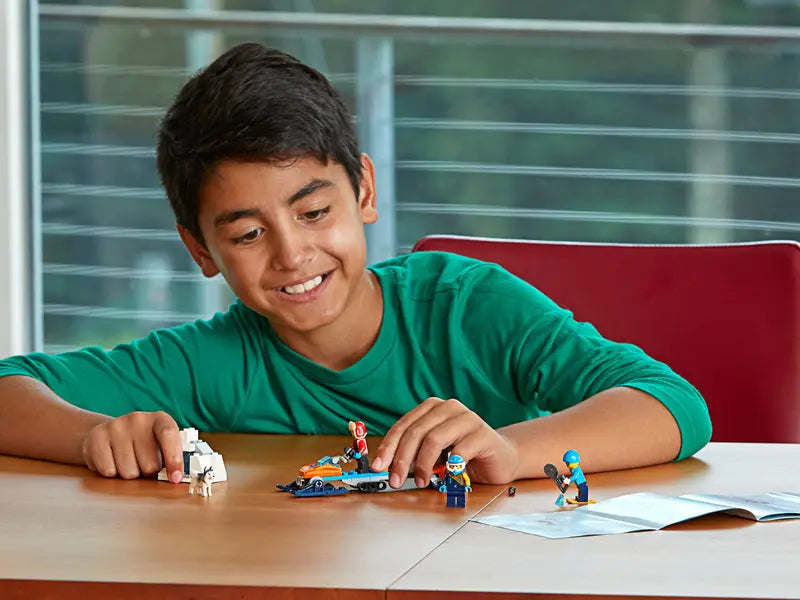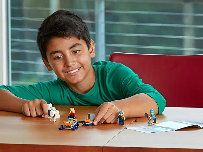 - Discover incredible things with the City Arctic Exploration Team set! This City Arctic Expedition set features a snowmobile with trailer hitch, trailer and storage box, plus an ice block element holding an insect encased in ice, saw, camera and a pair of snowshoes.