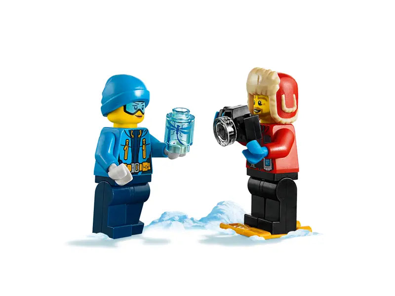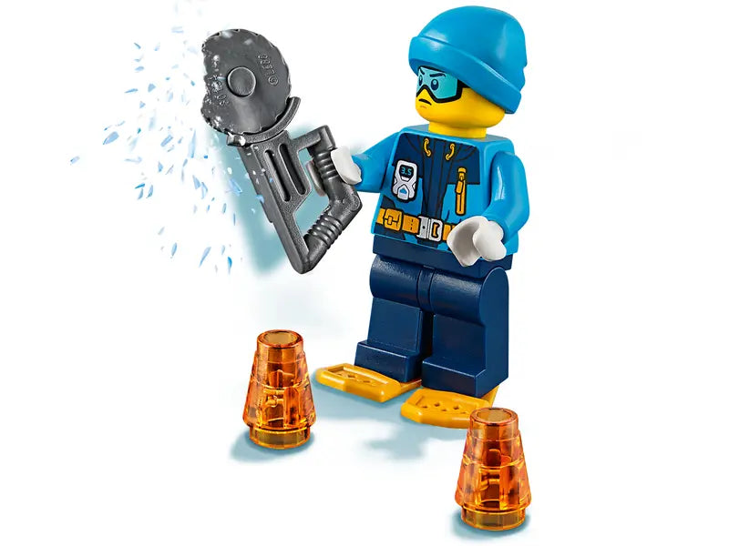 - This fun toy includes an explorer minifigure, lights, map, radio, saw and snowshoes