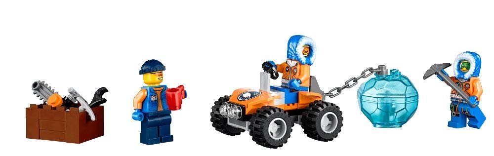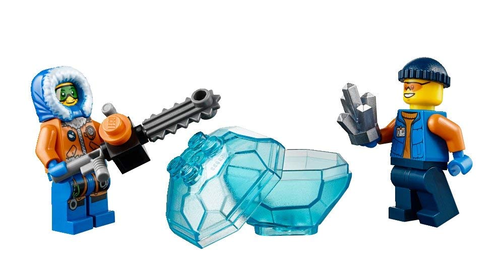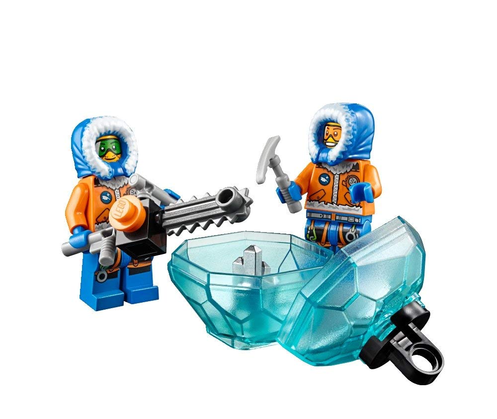 - Includes 3 Arctic explorer mini figures Accessories include Artic explorer hoods, pickaxe, grinder and a chainsaw.