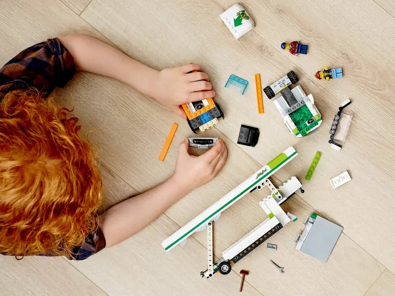 - Treat your everyday hero to this exciting City Car Transporter building set, with cool toy vehicles and fun characters that will take imaginative role play into the fast lane.