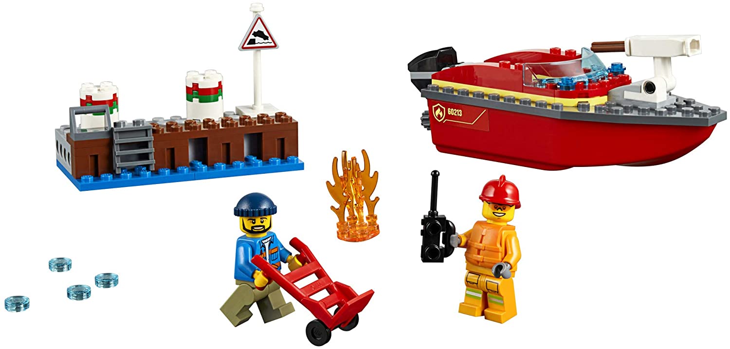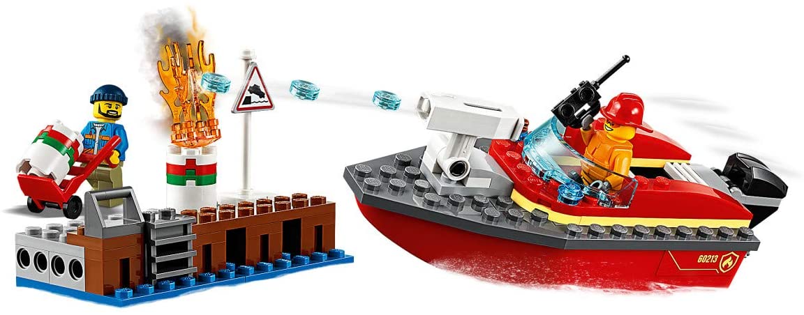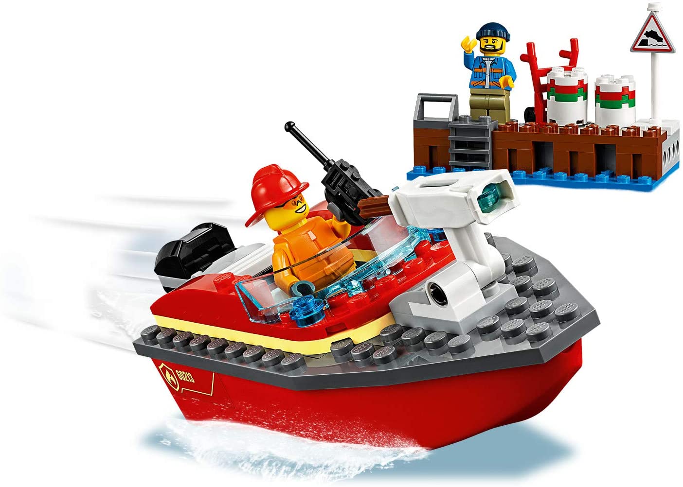 - Includes 2 City minifigures: a firefighter and a dockworker