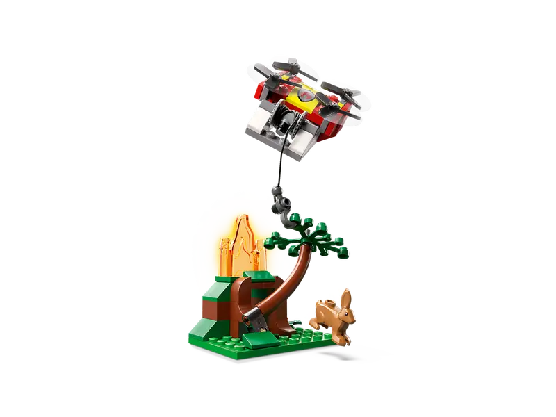 - Includes forest and city fire scenes, 3 firefighter minifigures, a bunny figure, a radio, fire axe, circular saw, spanner and cup accessories.