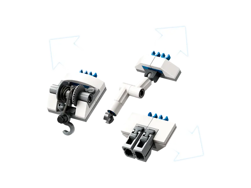 - If the rescue mission gets too hot, kids can send in the toy land drone with its robotic arm or lower the hook to airlift items to safety.