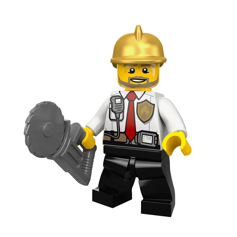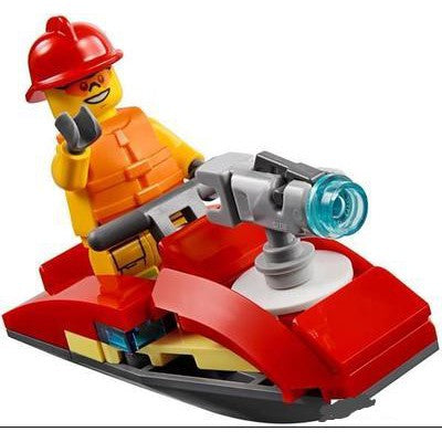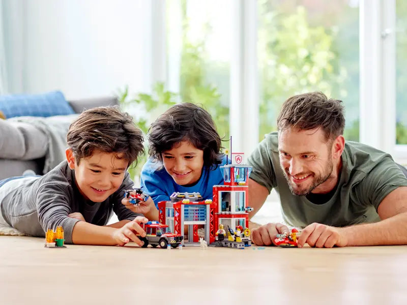 - This toy fire station features 4 City minifigures, including a fire chief, firefighters and fire dog figure. Plus, kids can use the toy drone with spinning rotors and a water scooter to reach fires quickly!