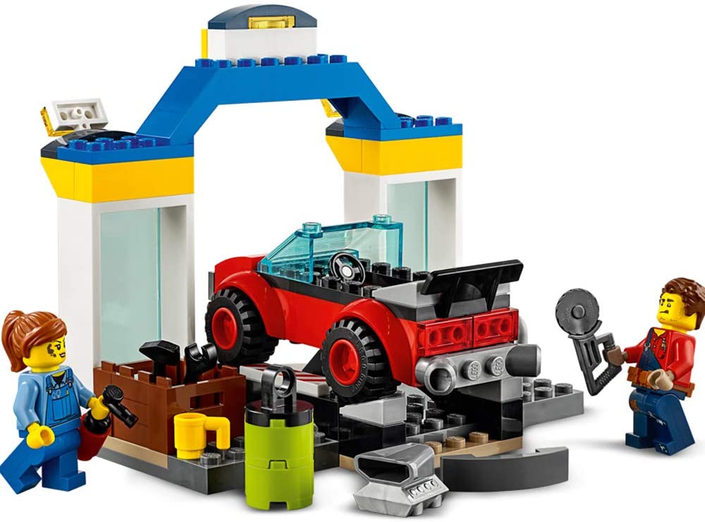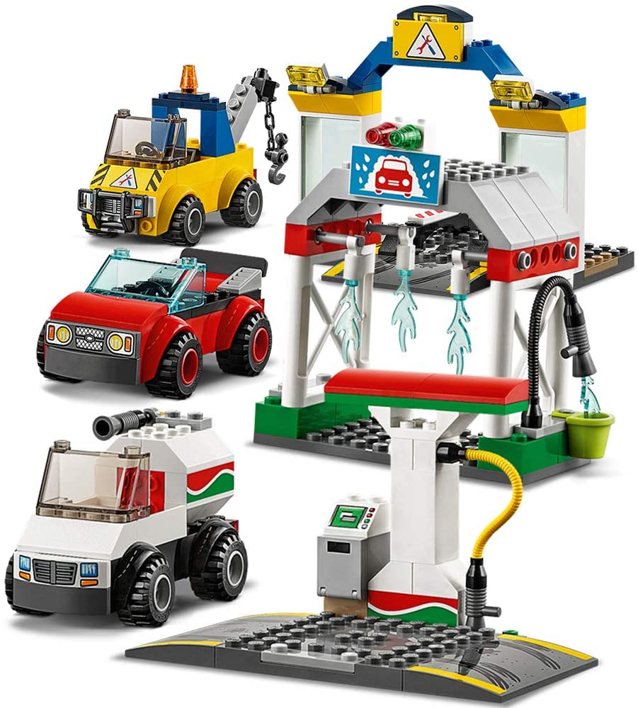 - This 4+ toy set is specially designed to be fun and easy for preschoolers and youngsters, featuring a car wash building, plus a sports car, tow truck and gas tanker, garage and gas station pump stand with special Starter Brick chassis and bases that let even first-time builders experience the pride of constructing buildings, vehicles and more, all on their own.