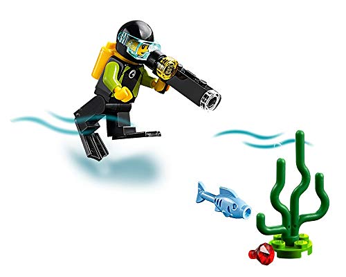 - This fun toy boat set also includes a buoy, 2 diver minifigures, and swordfish and crab figures.