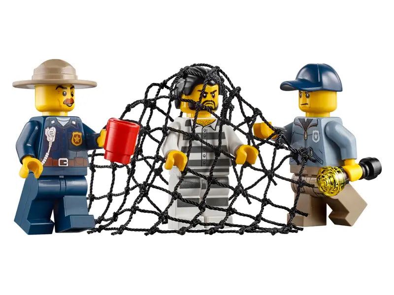 - Includes 7 figures: 4 police officers and 3 crooks, plus a mountain lion figure