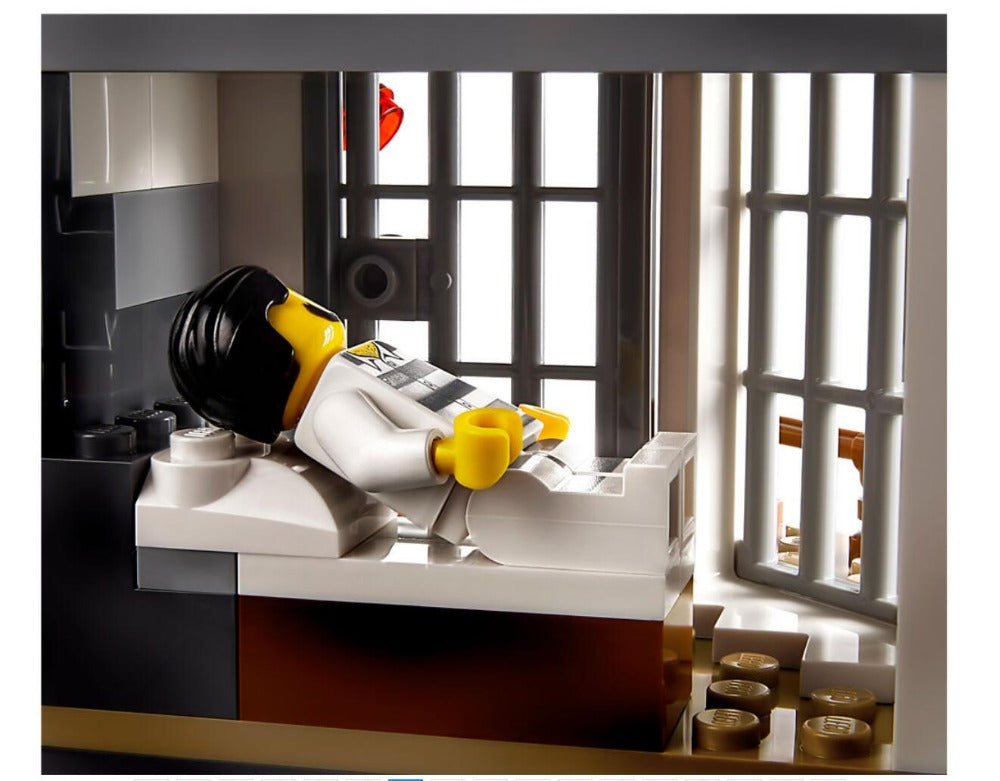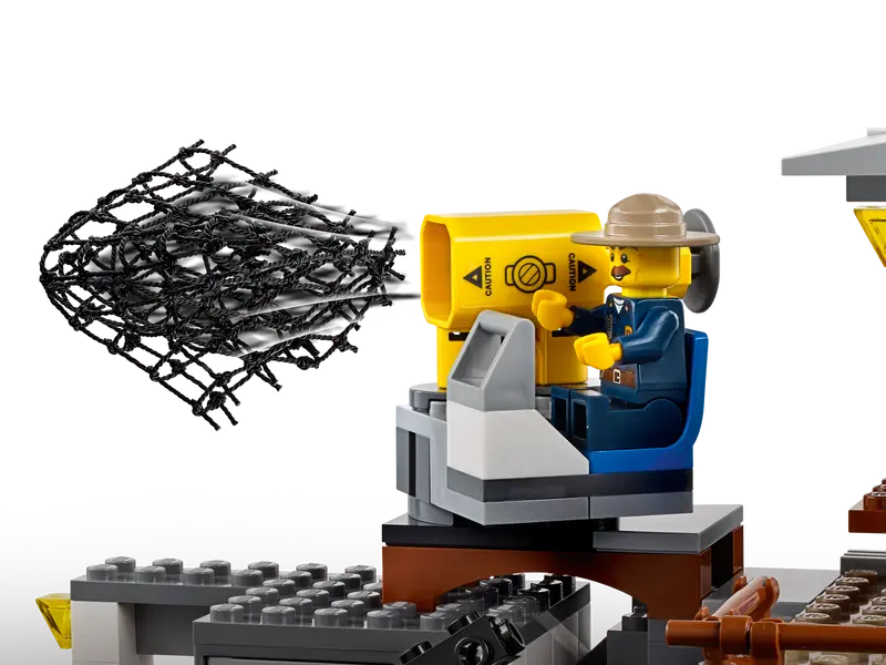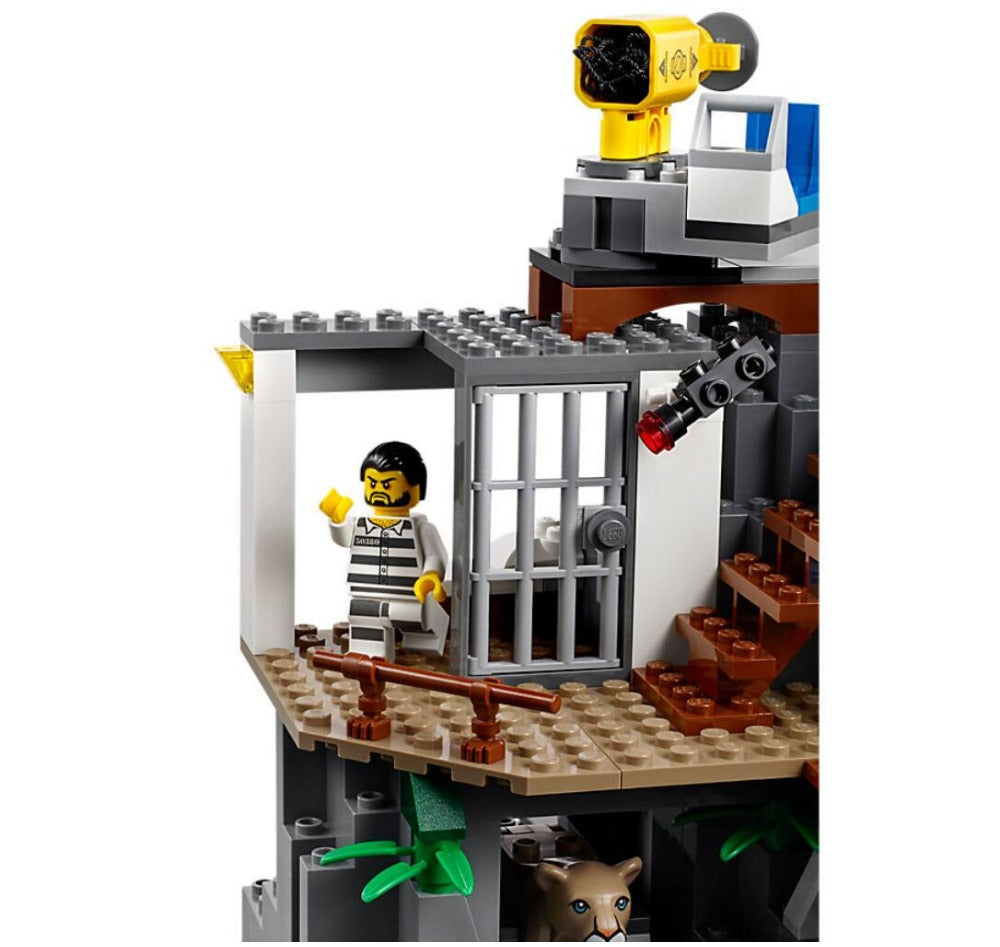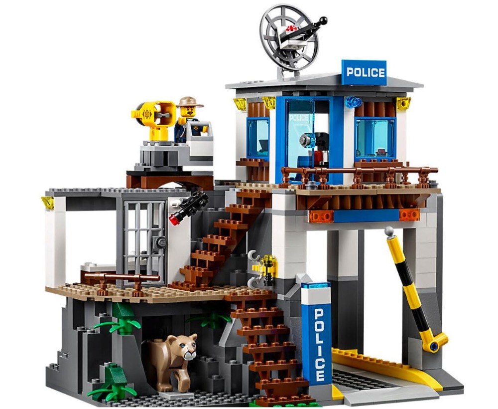 - This cool police station playset toy for kids features a 2-level police headquarters with a net shooter on the roof, jail cell with breakout wall/door and a cave under the cell with a mountain lion pounce function.