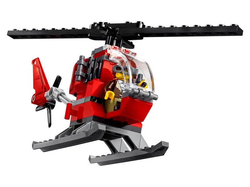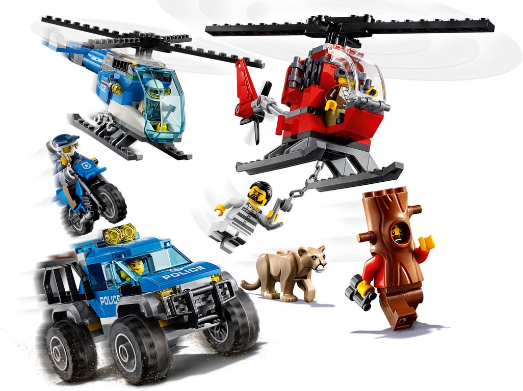 - This fun set also includes a helipad with ladder, police helicopter with spinning rotors, crook helicopter with spinning rotors and chain with hook, police 4x4 and police motorbike.