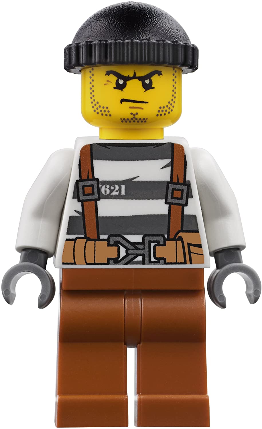 - Accessory elements include a pair of handcuffs, crowbar and two gold bars