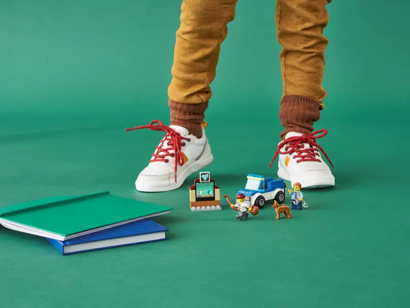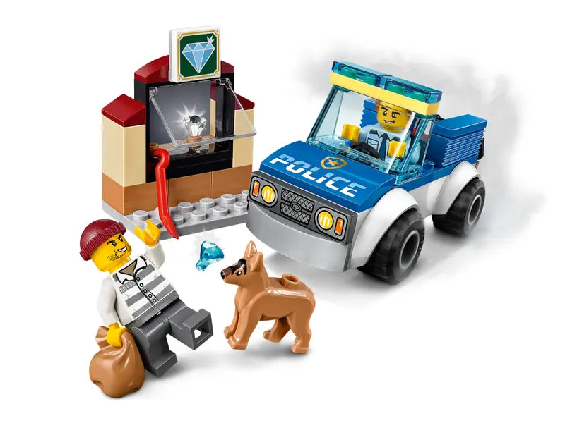- Includes 2 minifigures: a police officer and a villain, plus a cute police dog figure to assist with arresting the thief before he gets away.