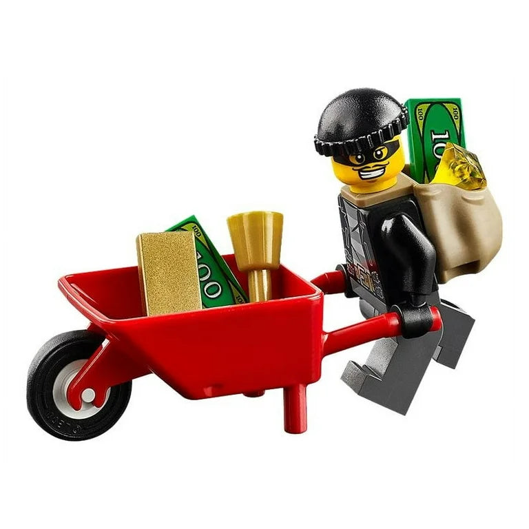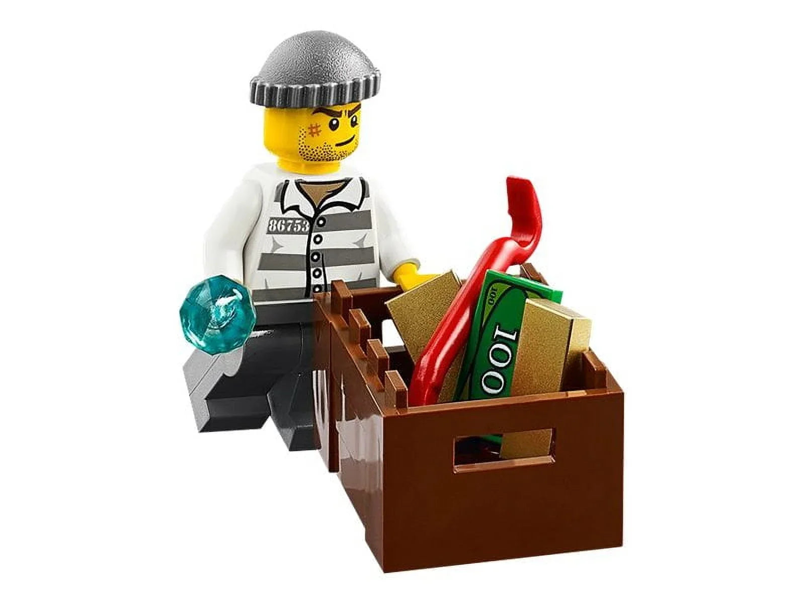 - Accessories include crowbar, 2 handcuffs, 3 gold bars, 3 bank notes, 2 crystals, gold cup, box, barrel, wheelbarrow, backpack, safe, camera, radar gun