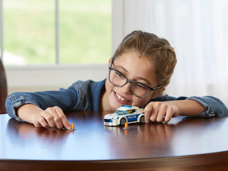 - Help keep the streets of the City flowing with this cool City Police Patrol Car with removable roof, minifigure cab and iconic decorations, plus 2 traffic cones and a minifigure.
