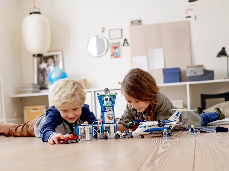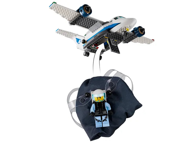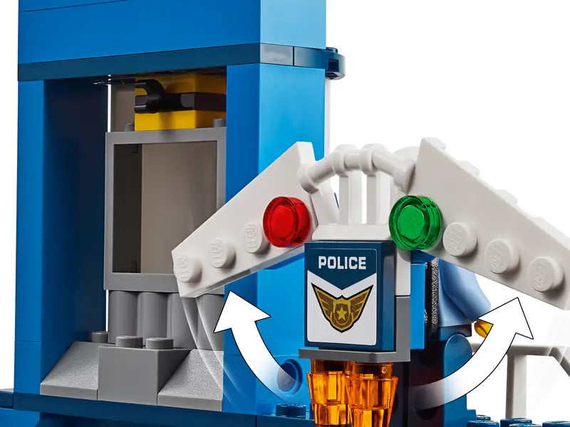 - Build a 3-level Sky Police air base with control tower, jail cell with breakaway wall, large police plane, jetpack with foldable wings, working parachute and a getaway car for exciting police chase action.