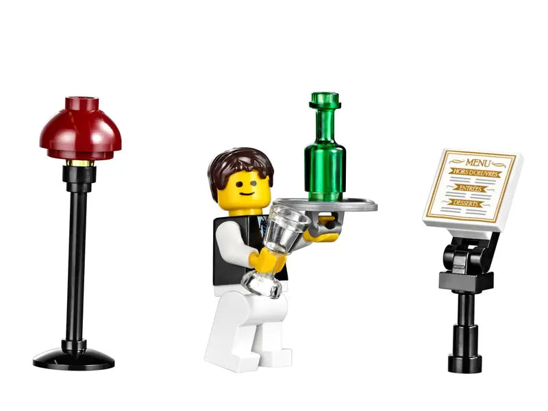 - Includes chef, waiter, girl and romantic couple minifigures