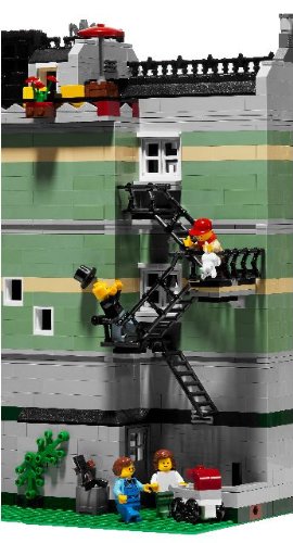 - Apartments have lots of details like bay windows, fireplace with tools, grandfather clock and window. including four minifigures.