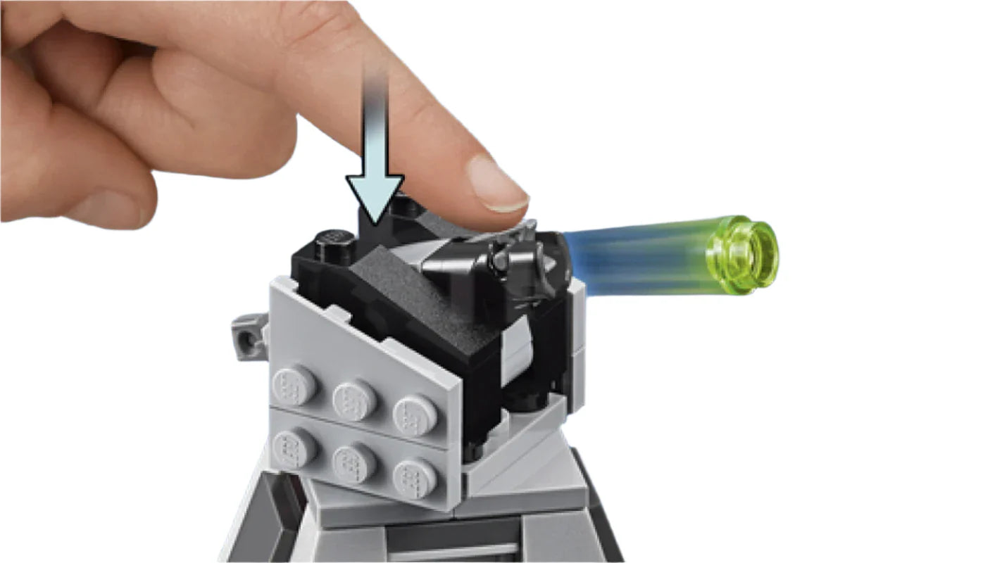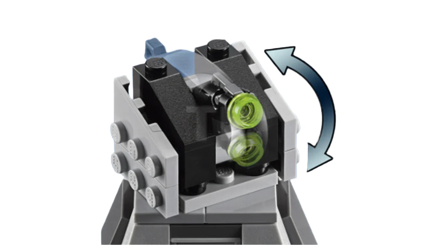 - Flip open the hatches to access the control center and ammo storage, load the stud shooter and fire to repel Resistance attacks.