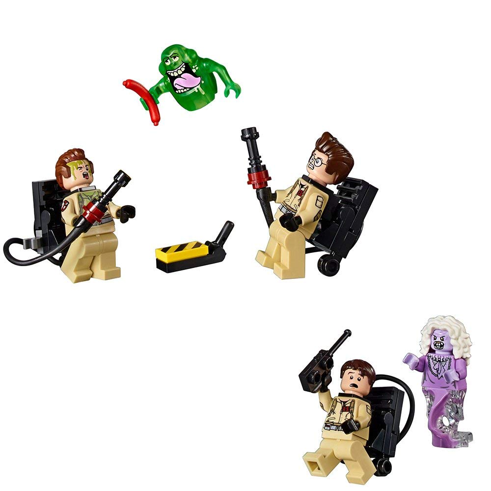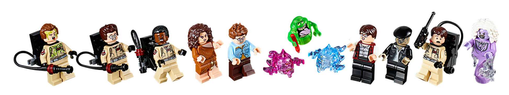 - Includes 9 minifigures: Peter Venkman, Raymond Stantz, Egon Spengler, Winston Zeddemore, Janine Melnitz, Dana Barrett, Louis Tully, Library Ghost and Zombie Driver.