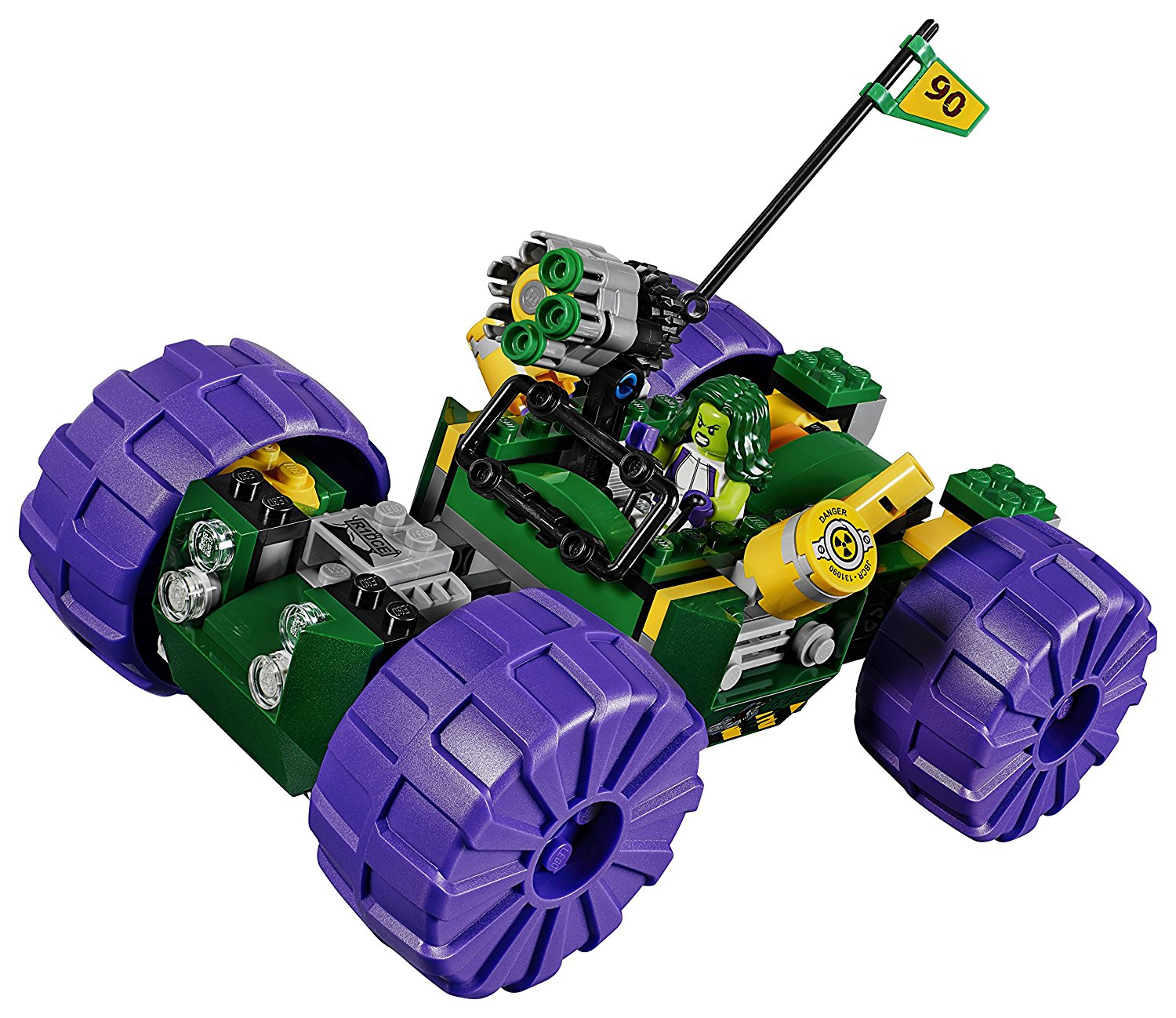 - Vehicles feature jumping Hulk functions, big rolling wheels, stud-shooting blasters, and more!
