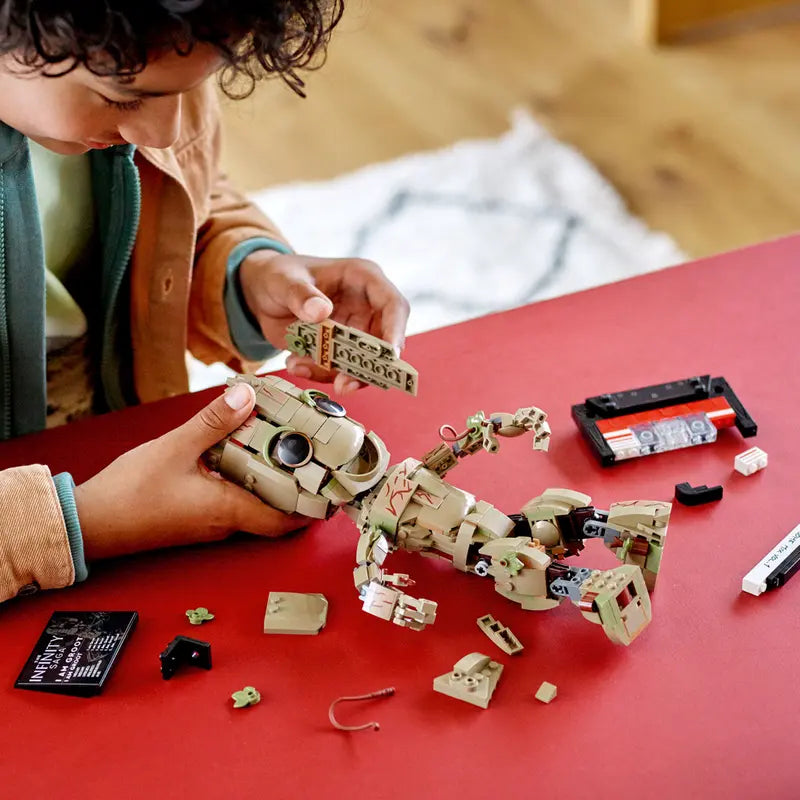 - Play-and-display Groot – with cool moves! Marvel fans can build their own Groot and arrange the cute character to recreate his favorite dance moves.
