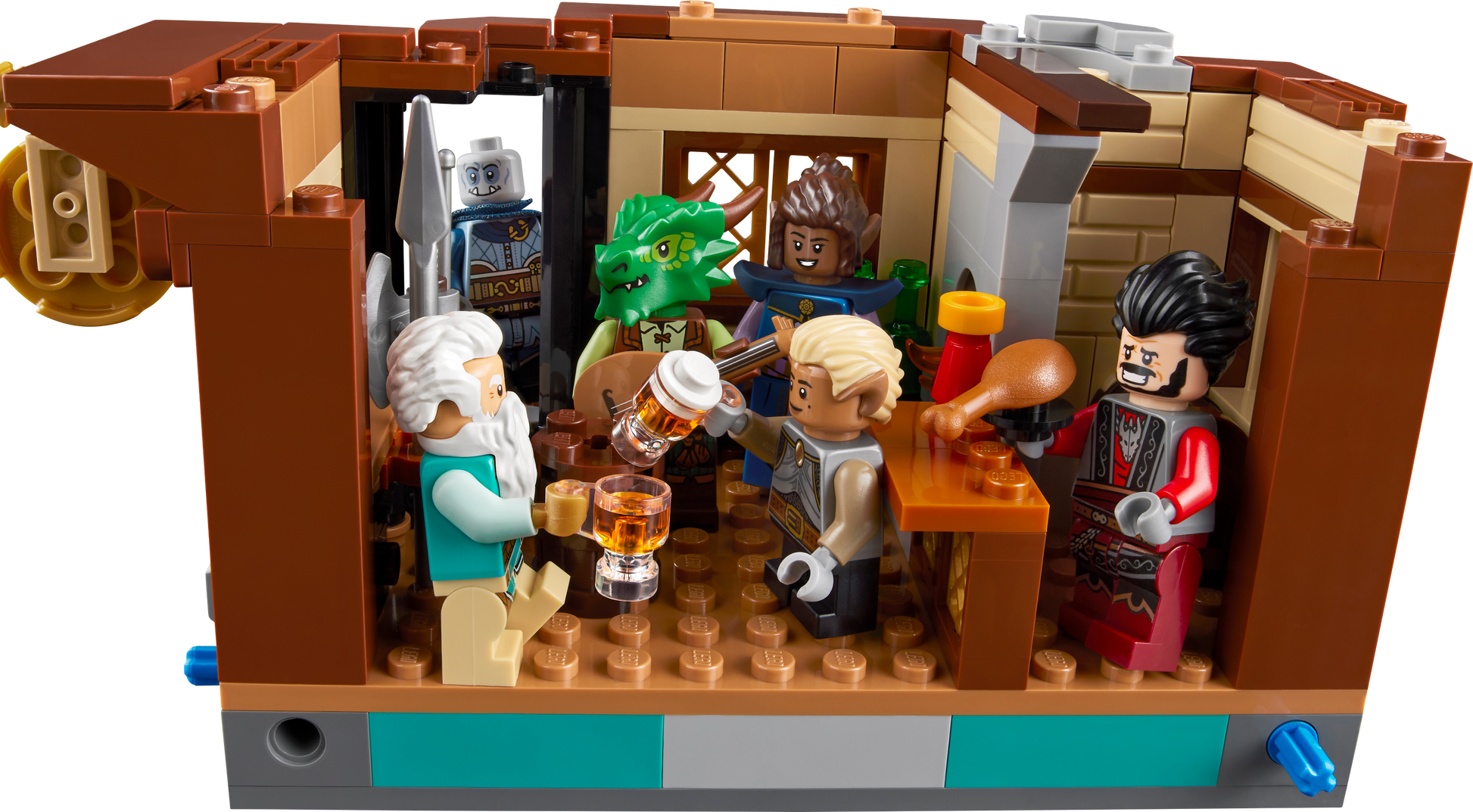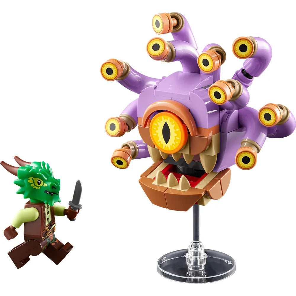 - Mythical creature figures – Includes an elf wizard, a dwarf cleric, a gnome fighter, an orc rogue and dragonborn Alax Jadescales minifigures, plus monsters such as an owlbear and a beholder.