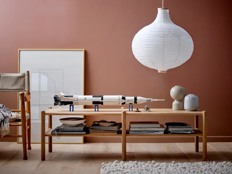 - Features a meter-high (approximately 1: 110 scale) of the NASA Apollo Saturn v with removable first rocket stage, removable s-ii second rocket stage - both with rocket engine details.