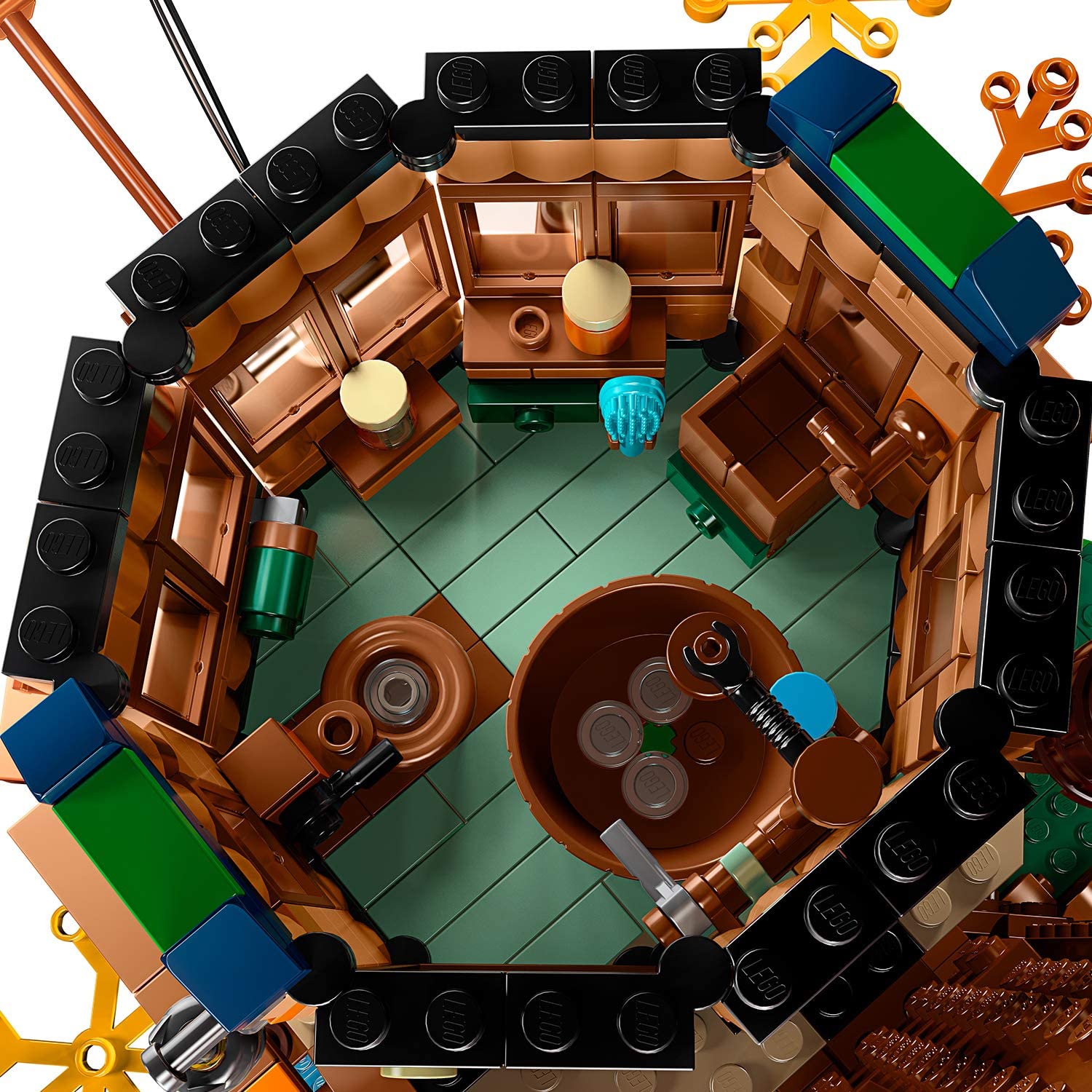 - Challenge advanced builders and inspire role-play fun with this highly detailed Tree House, featuring 3 cabins, a tree with interchangeable summer and fall leaves and play-inspiring features including a crane, swing and a treasure chest.