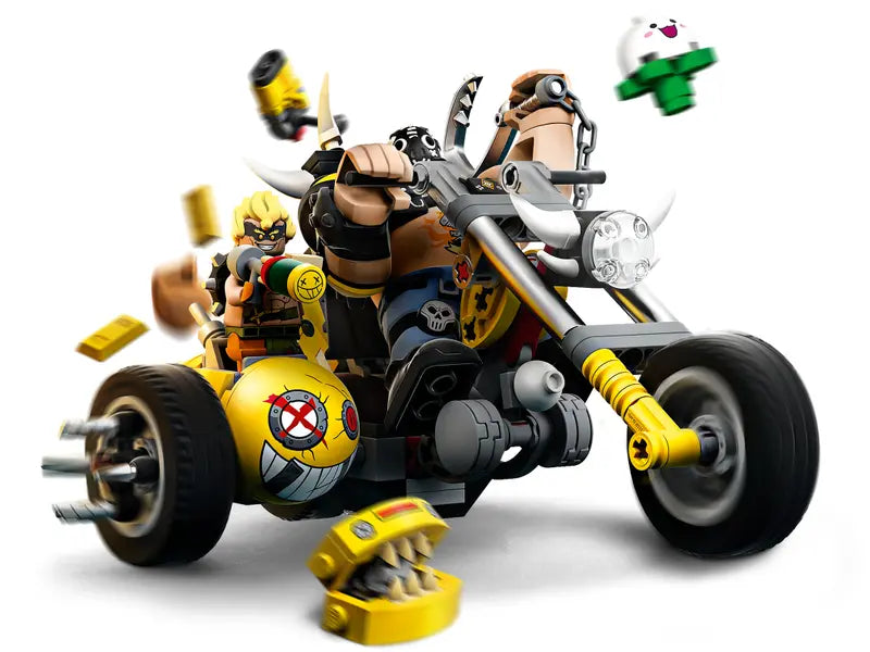 - This brick-built model comes with 2 highly popular Overwatch figures: BigFig Roadhog with his Chain Hook and minifigure Junkrat with his Frag Launcher and iconic peg leg.