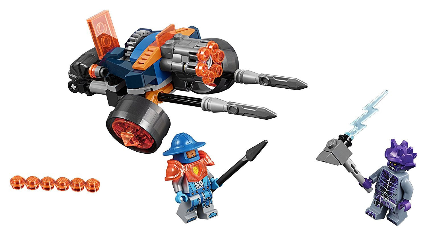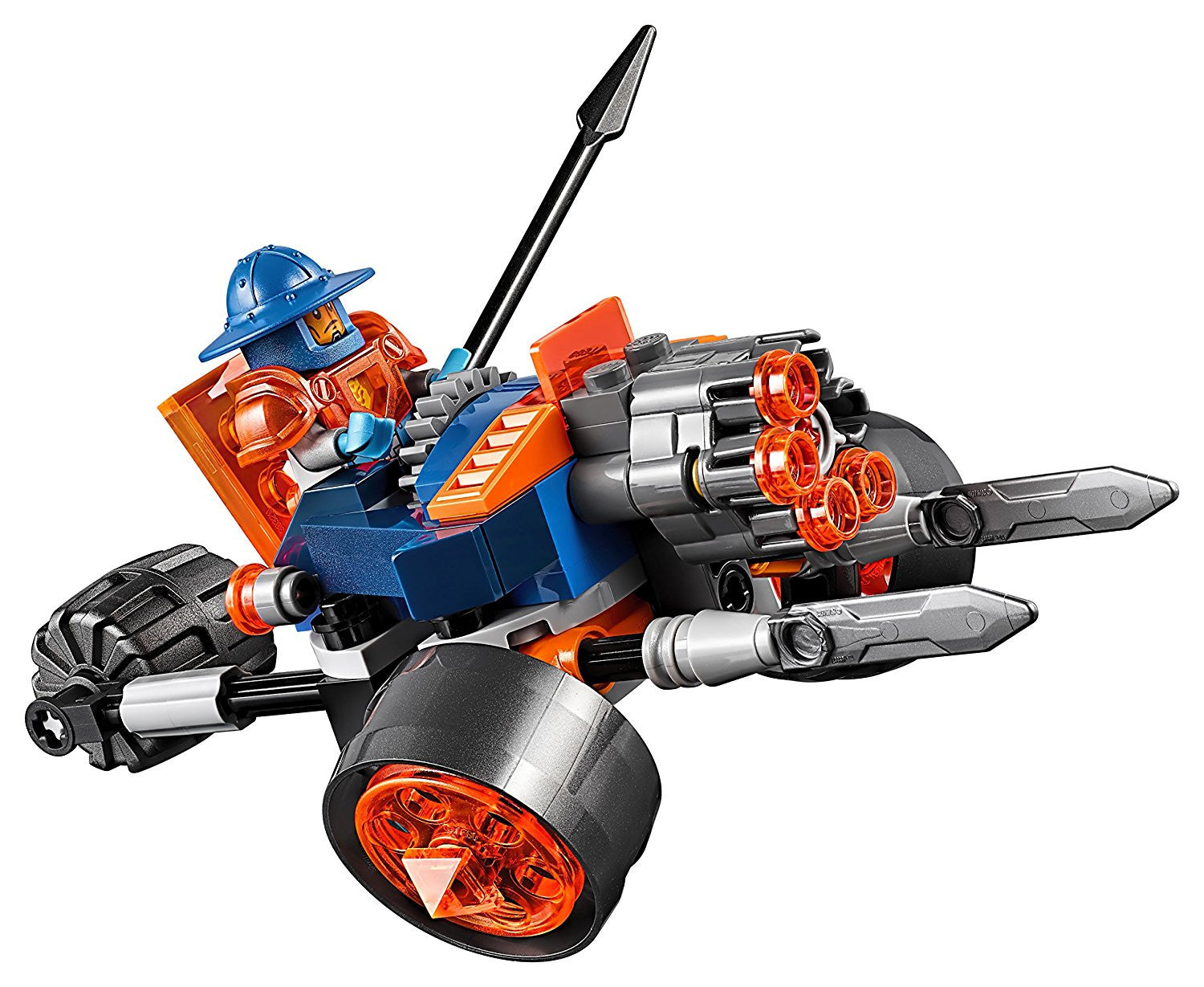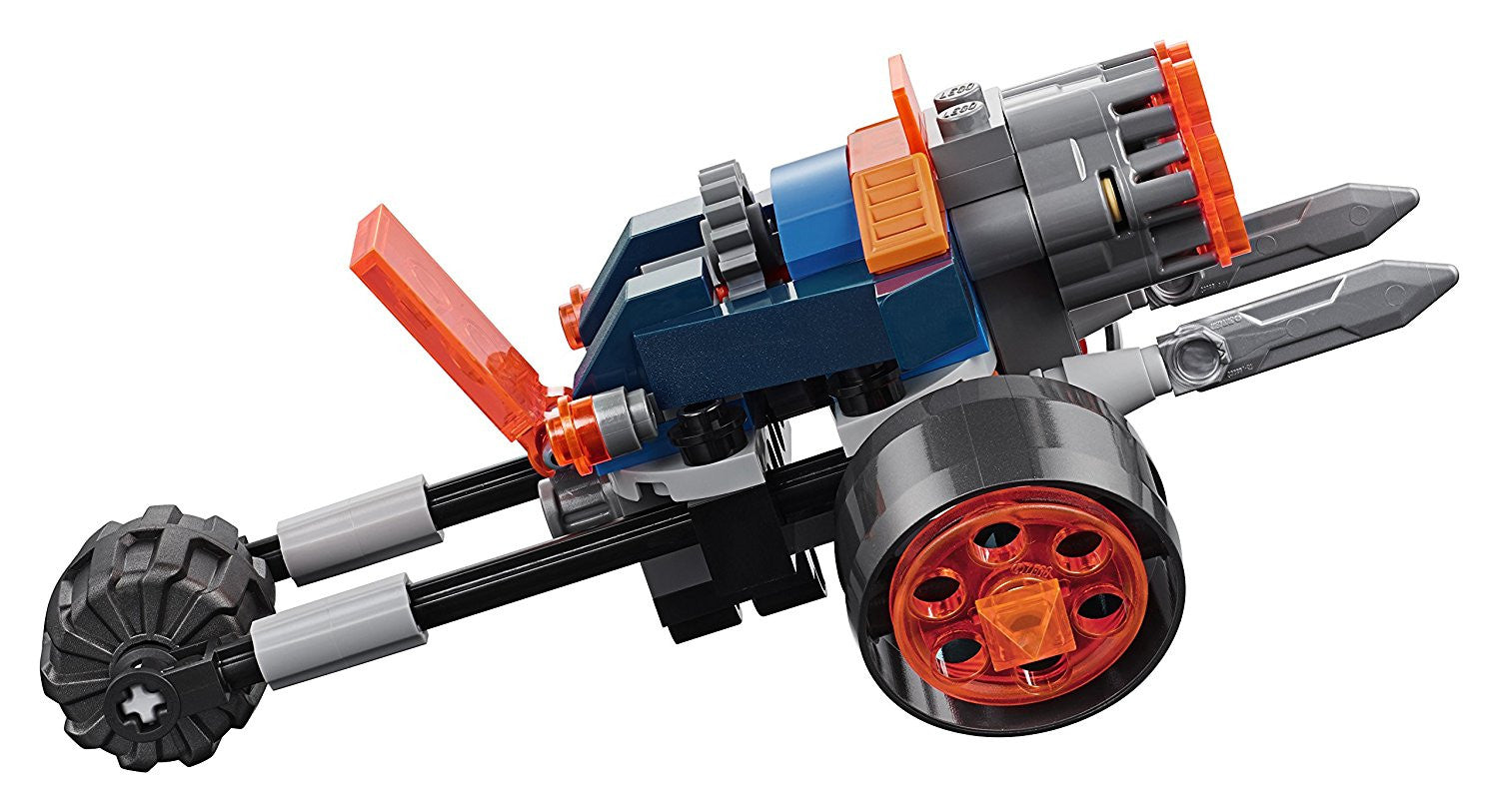 - Protect the kingdom of Knighton with the King’s Guard Artillery battle vehicle, featuring a NEXO KNIGHTS minifigure cockpit, six-stud shooter and rear-wheel-activated extending swords at the front.