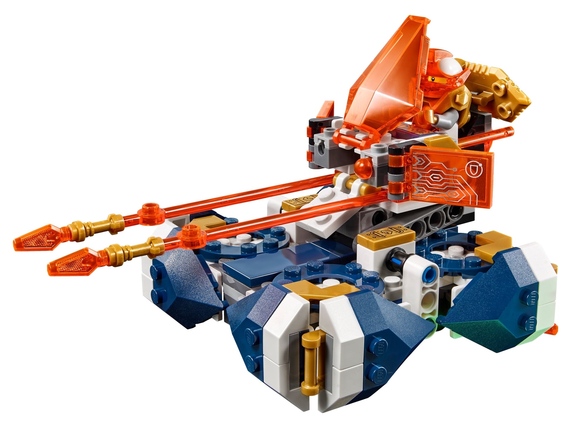 - Help Lance defeat Cezar and CyberByter Dennis with the NEXO KNIGHTS Lance’s Hover Jouster, featuring a minifigure cockpit with 2 transparent-red lances, 2 flick missiles, 2 movable deflectors, 2 shield holders plus 4 rotating wheels for speedy jousting action.