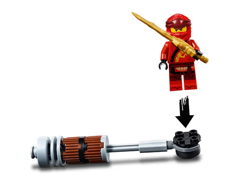 - Build Kai’s Blade Cycle, featuring foldout blades, and Zane’s Elemental Snowmobile, with a stud shooter and The Shurikens of Ice, and reclaim Kai’s Golden Weapon—The Sword of Fire—from the Serpentine snakes!