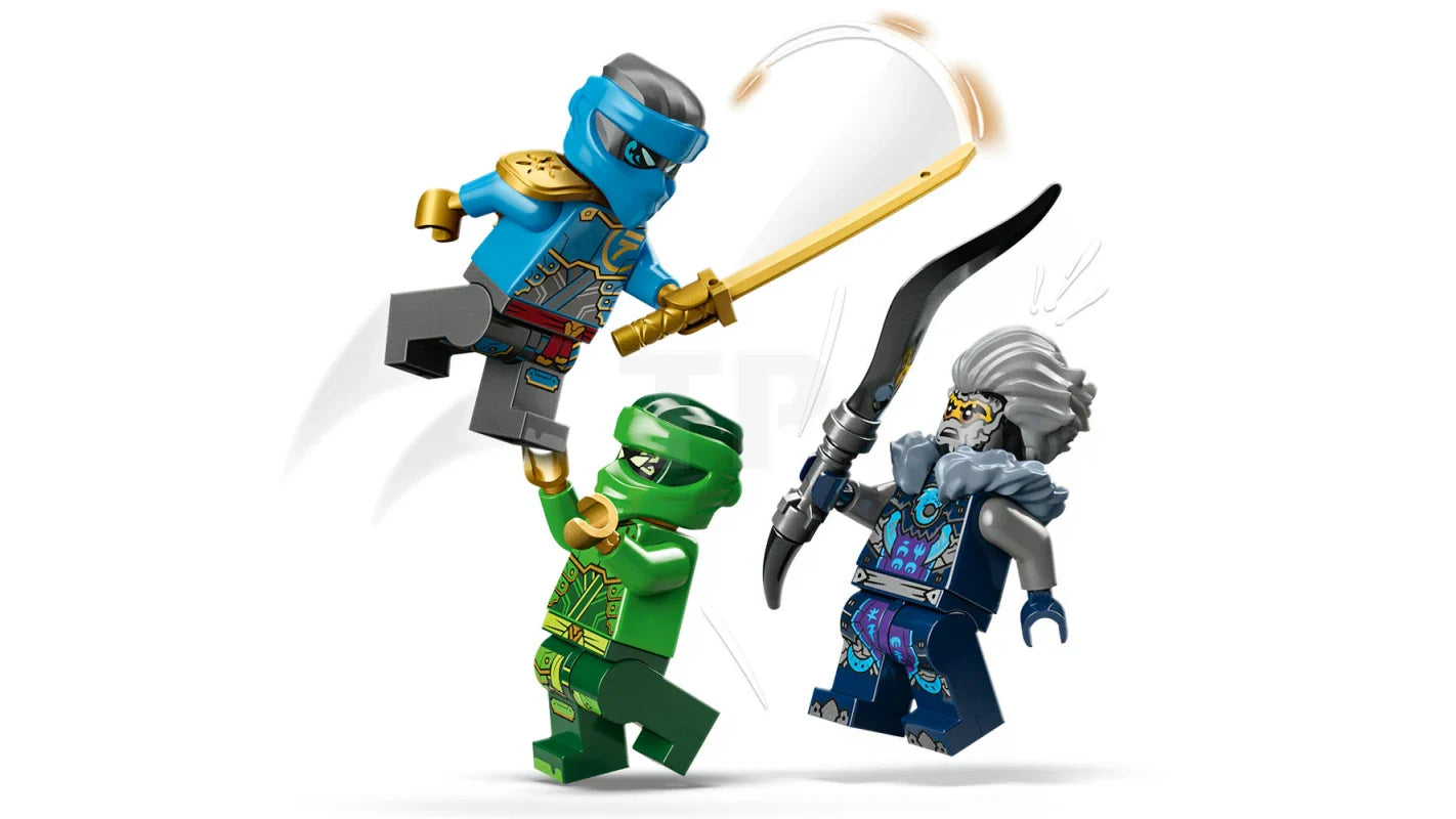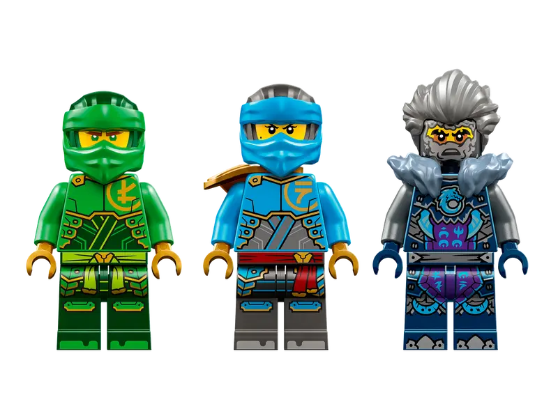 - 3 ninja action figures – Kids can play out gripping ninja action as they pit Lloyd and Nya, each armed with a katana sword accessory, against Cinder with his sword accessory.