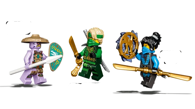 - Ninja toy comes with 3 minifigures: Island Lloyd and Island Nya, each armed with a weapon, to take on the Rumble Keeper, who has a cool spear and shield.