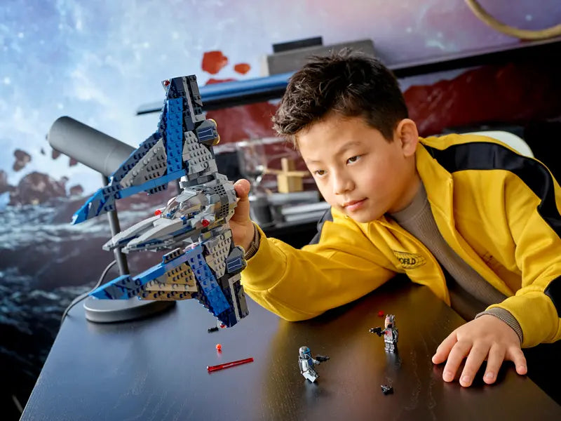 - Awesome buildable starfighter model Kids will love this brick-built Mandalorian Starfighter, which has loads of cool features to inspire hours of play.