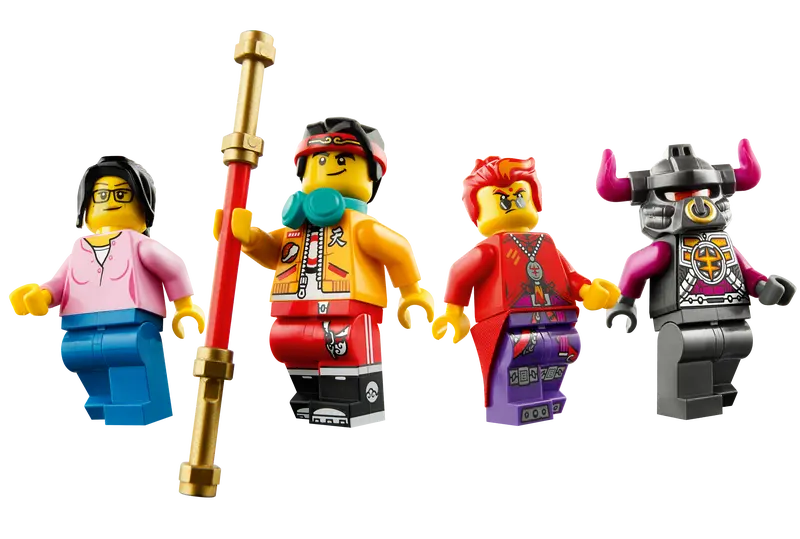 - Children will love role-playing original adventures they dream up themselves with 4 minifigures – Monkie Kid with The Golden Staff, Red Son with a Power Glove and brick-built Twin Fire Jet Pack, Growl and Ai.