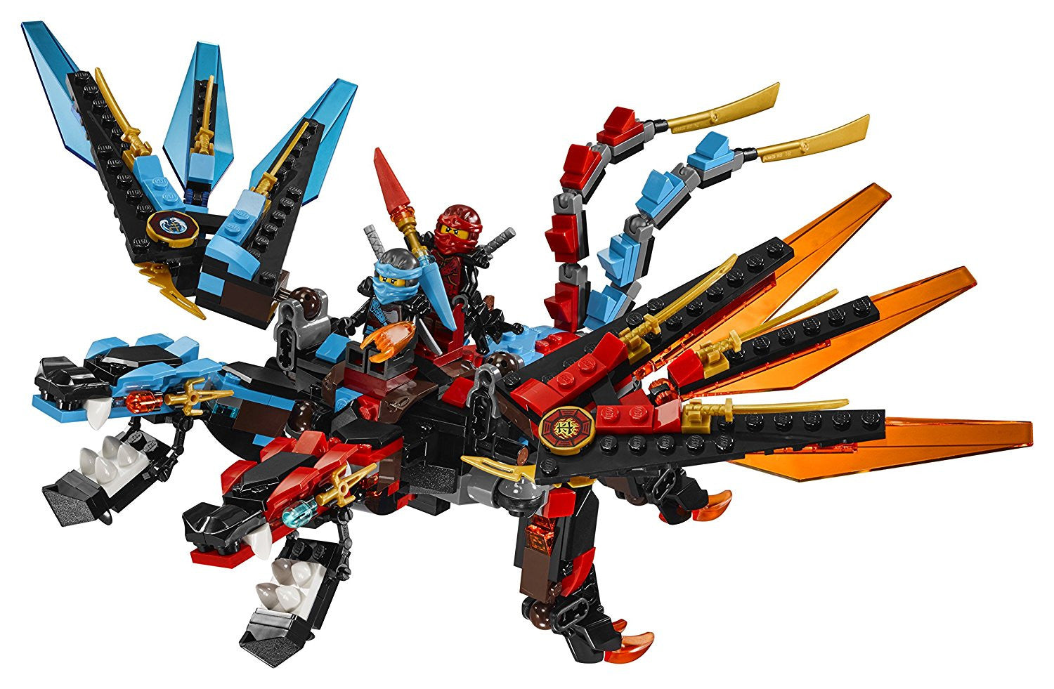 - The highly posable, two-headed Fusion Dragon has seats for two minifigures and a shooting crossbow to take on the buildable Buffmillion mech.