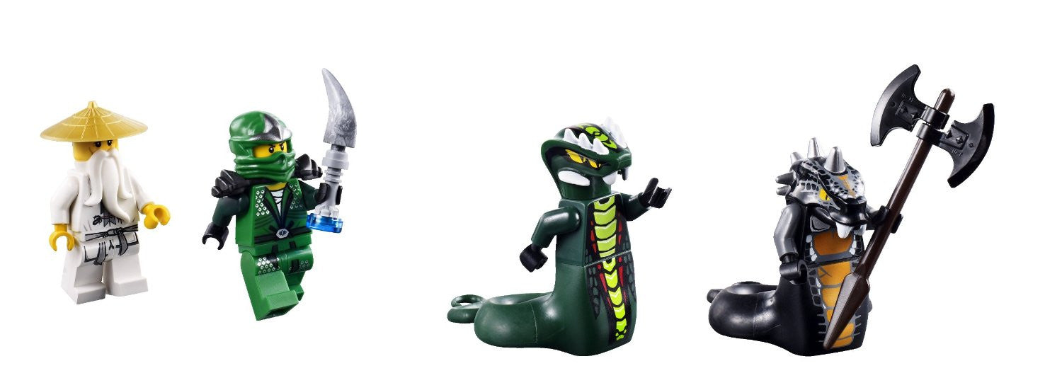 - Weapons include Hypnobrai fang blade with blue anti-venom capsule, all 4 golden Spinjitzu weapons and 7 regular weapons.