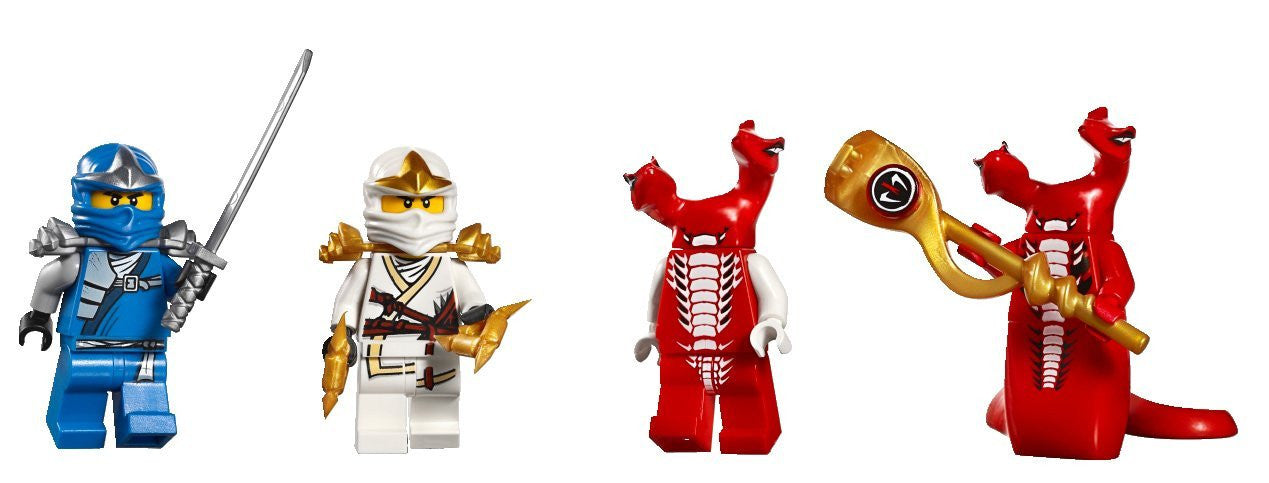 - Includes Zane ZX, Jay ZX, Fangtom and Fangdam minifigures, 2 Shurikens of Ice, ninja sword and golden Fangpyre staff