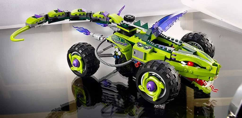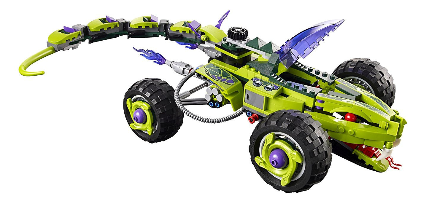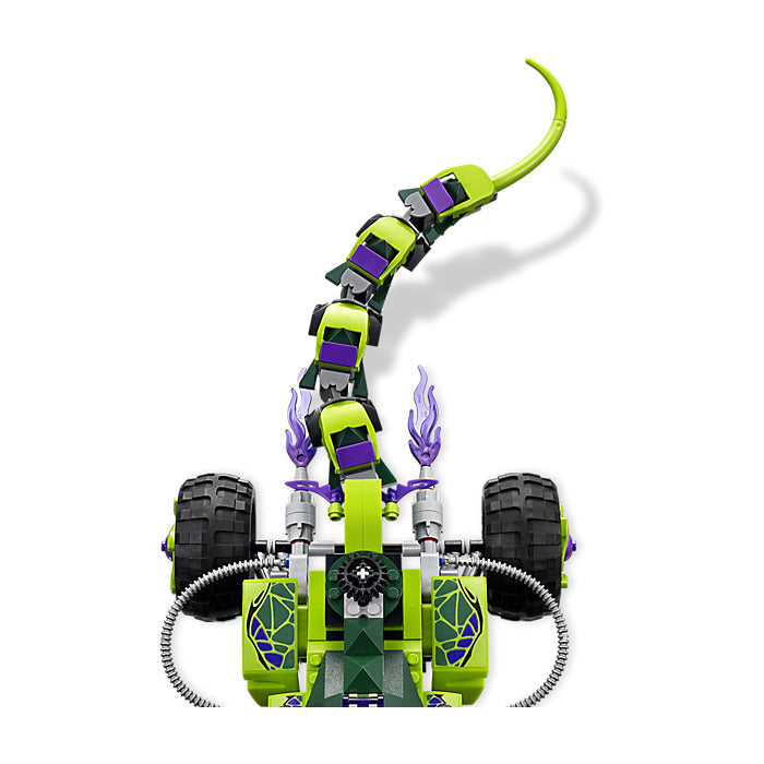 - Features tail strike and biting front-end fang functions, all-wheel suspension, opening cockpit, 4 snake spinner crowns in wheels and golden Fangpyre staff with anti-venom