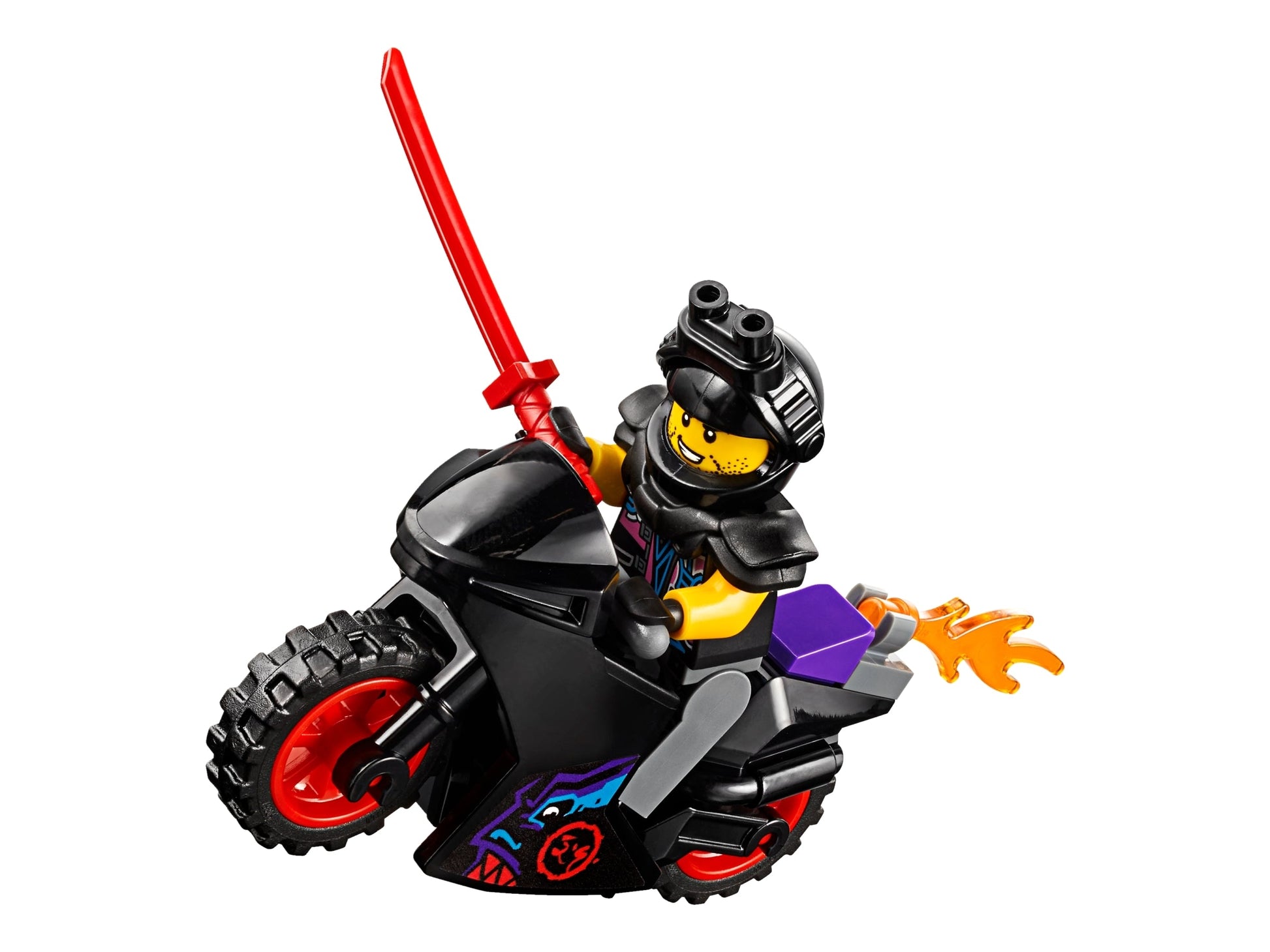 - Street bike features a minifigure seat and a translucent flame-style exhaust element, weapons include Kai's 2 katanas and Luke Cunningham's katana.